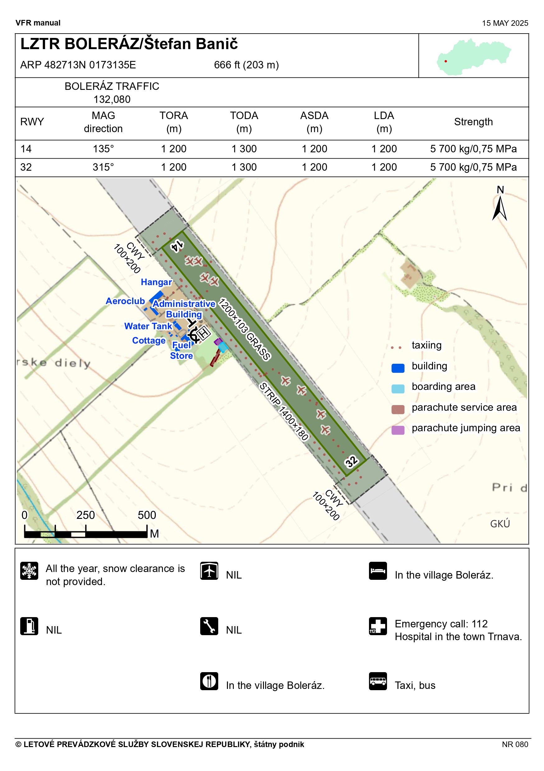 Letisko má dĺžku 2600 metrov, udržiavaná dráha má dĺžku 1 200 metrov. Šírka dráhy je 110 metrov.